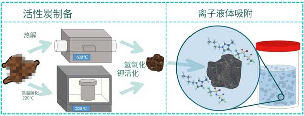 目前,處理含水相中離子液體的方法包括高級氧化法、生物降解法、膜分離法和吸附法等。其中,吸附法因其操作簡便、成本相對較低、設計靈活且通常不產生有害副產物等優勢,被認為是最具應用前景的技術路徑之一。吸附法的核心在于吸附劑。活性炭作為最傳統且應用最廣泛的吸附劑,具有發達的孔隙結構、巨大的比表面積和豐富的表面化學官能團,對多種有機污染物展現出卓越的吸附能力。然而,商業活性炭生產成本較高,且對特定污染物(如離子液體)的吸附選擇性和容量仍有優化空間。